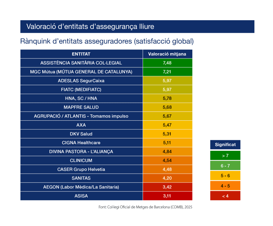 “En un entorn on molts metges expressen insatisfacció amb les retribucions i la relació amb les asseguradores, aquesta valoració ens anima a continuar treballant estretament amb el col·lectiu mèdic”.